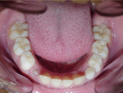 (omdat er hier blijvende kiezen ontbraken moesten er kiezen getrokken worden en de ontstane ruimtes gesloten, dit verklaart de langere behandeltijd)